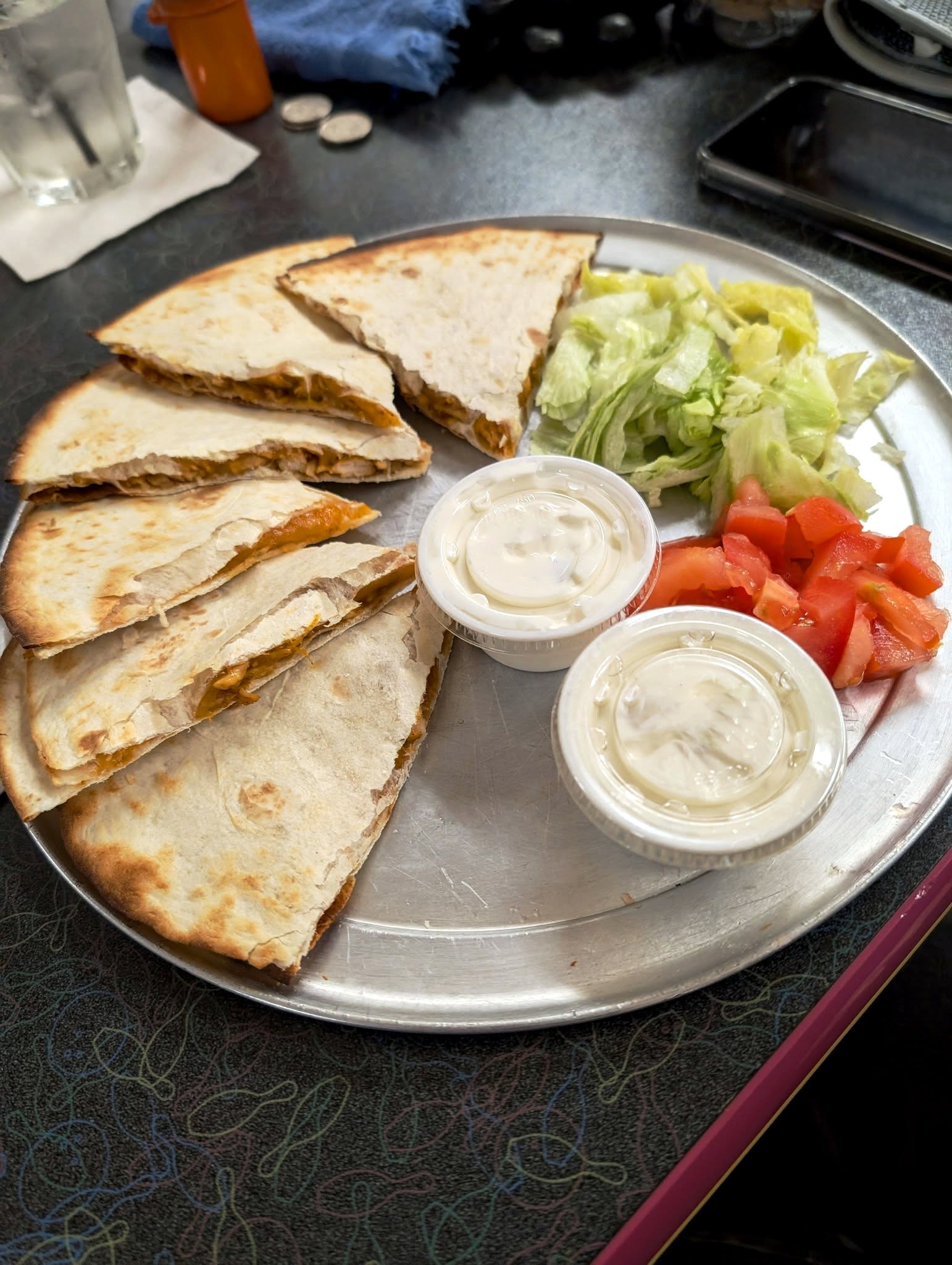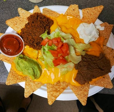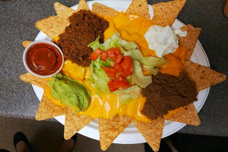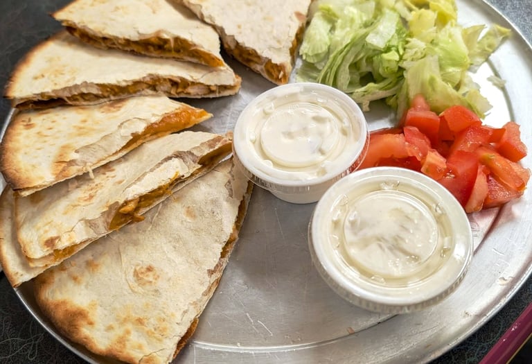 Made with Chicken or beef, shredded cheese, lettuce, and tomatoes served with salsa and sour cream