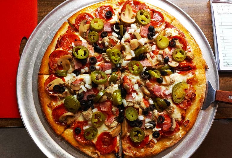 Toppings: Pepperoni, Ham, Bacon, Sausage, Onion, Pineapple, Black Olives, Jalapenos and Mushroom + Toppings add $1 each (limit 3)